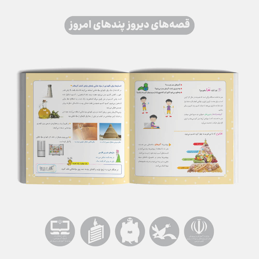 یک گاز از کتاب انرژی‌های خوش‌مزه: متن‌های این کتاب بر اساس سرفصل‌های کتاب درسی علوم طراحی شده و به دانش‌آموزان اطلاعات بیشتری درباره مواد غذایی مورد نیاز بدن می‌دهد.