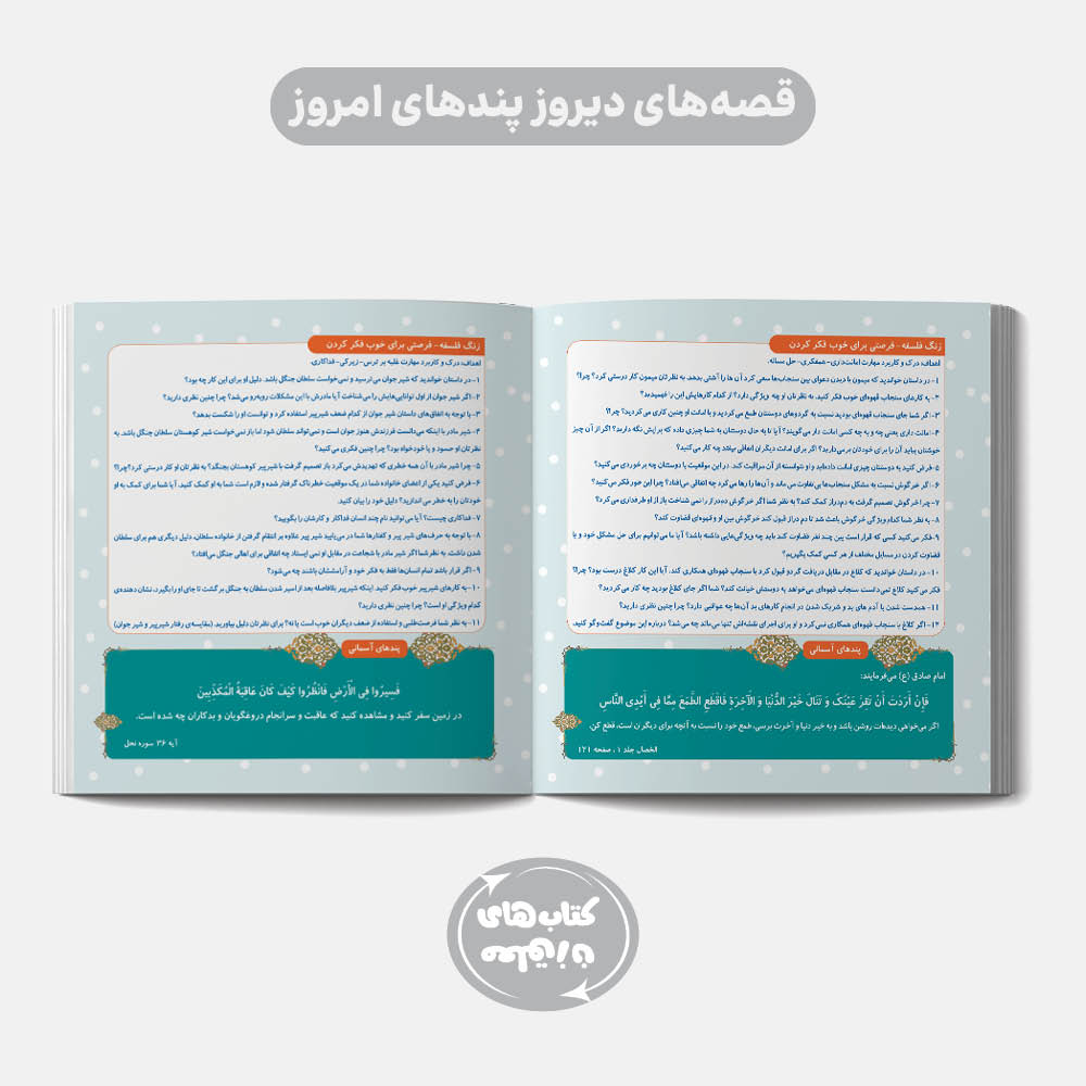 پنج جلد از کتاب‌های مجموعه قصه‌های دیروز، پندهای امروز به ترتیب با عناوین خری که خر نشد، خرگوش و شیر، شکار بزرگ، ماجرای باغ انگور و راز درخت بلوط به صورت مجموعه دنباله‌دار طراحی شده است و در هر قصه یک مهارت زندگی و آداب اخلاقی به کودکان آموزش داده می‌شود.
