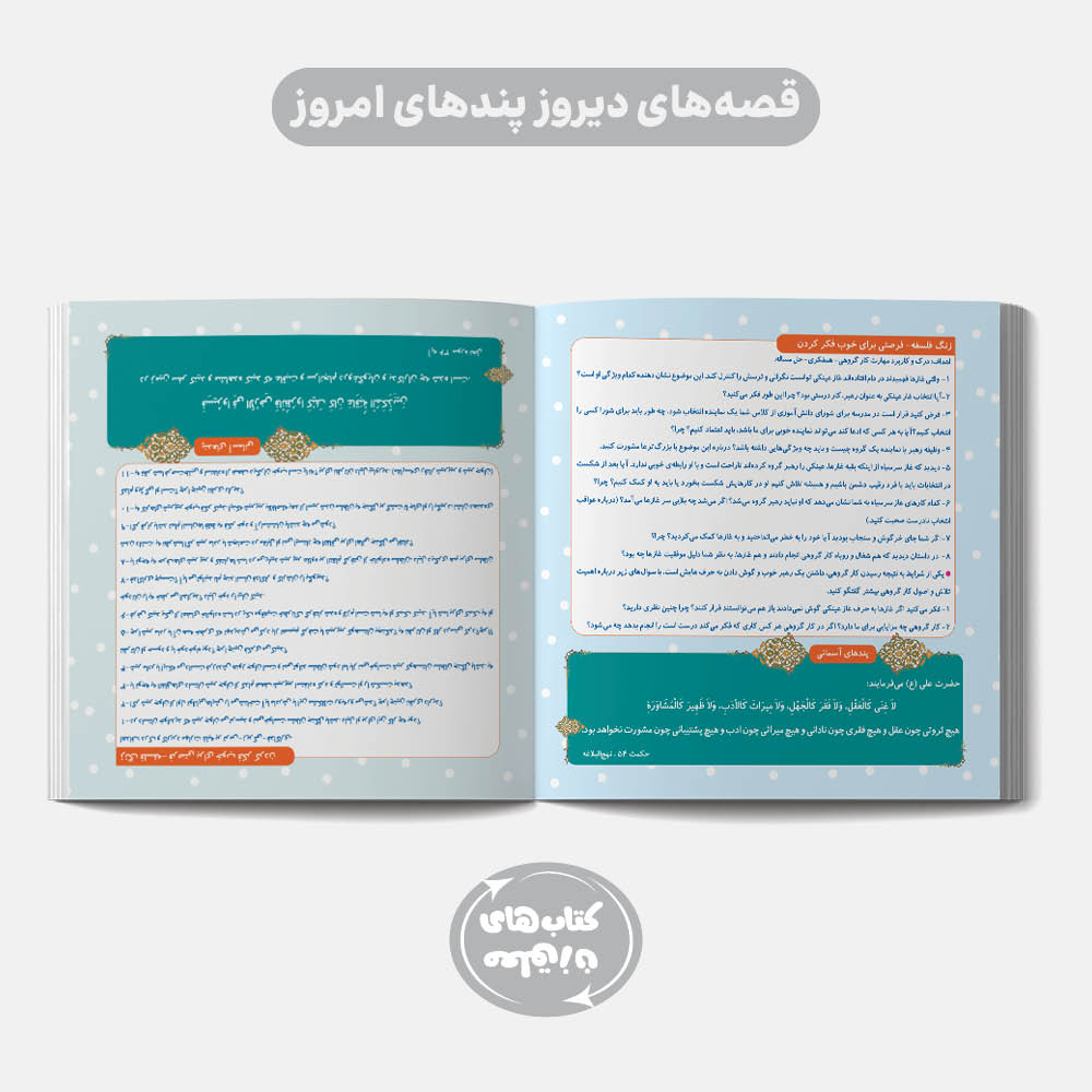 پنج جلد از کتاب‌های مجموعه قصه‌های دیروز، پندهای امروز به ترتیب با عناوین خری که خر نشد، خرگوش و شیر، شکار بزرگ، ماجرای باغ انگور و راز درخت بلوط به صورت مجموعه دنباله‌دار طراحی شده است و در هر قصه یک مهارت زندگی و آداب اخلاقی به کودکان آموزش داده می‌شود.